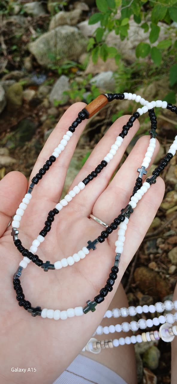 Cada cordão é confeccionado à mão com contas de alta qualidade em vidro, cristal ou pedra natural, unidas por fios de nylon reforçado. Disponível em vibrantes combinações de cores que homenageiam os orixás e entidades, como branco para Oxalá, azul para Iemanjá, vermelho para Ogum e amarelo para Oxum, esta guia é mais do que um acessório — é um símbolo de proteção, fé e sintonia espiritual.
